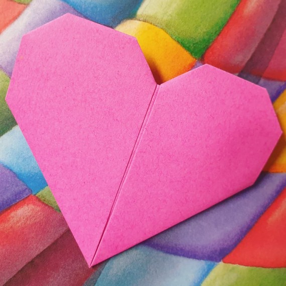 Mit nur einem Papier kannst du dir ein wunderschönes Herz-Lesezeichen falten.