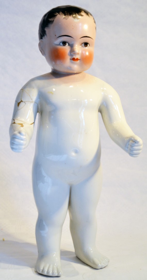 Diese Badepuppe mit gemalten Augen aus chinesischem Porzellan wird auch Frozen Charlie oder Frozen Charlotte genannt.