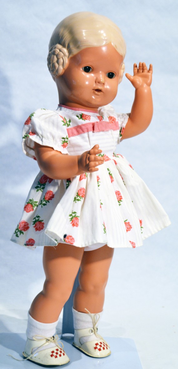 Entstanden ist diese Puppe 1914 in Waltershausen (Landkreis Gotha) in Thüringen, einem der bedeutendsten Zentren für Puppenindustrie.