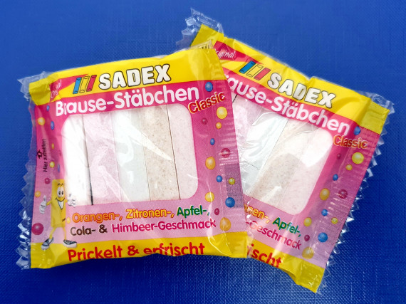 1951 kommen die Brausestäbchen SADEX auf den deutschen Markt. Der Name setzt sich aus dem Nachnamen des Firmeninhabers Fritz SAttler und der verwendeten DEXtrose zusammen.