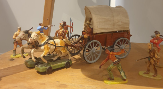 Auch der Spielzeughersteller O. & M. Hausser in Neustadt bei Coburg bedient sich dieses Hypes und produziert zahlreiche Elastolin-Massefiguren, mit denen sich die Helden Winnetou und Co. sowie der gesamte Wilde Westen mit Cowboys und Indianern ins Kinderzimmer holen lässt.