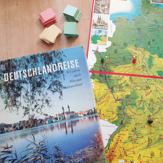 Der Kalte Krieg macht in den 60er-Jahren auch vor Gesellschaftsspielen nicht halt. Aus dem Hause Ravensburger erscheint 1967 eine Deutschlandreise von Freiburg bis ins polnische Stettin – allerdings ohne innerdeutsche Grenze. Erst 1977 bringt der Verlag zur Nürnberger Spielwarenmesse eine Ausgabe heraus, in der die Grenze zwischen DDR und Bundesrepublik klar eingezeichnet ist.