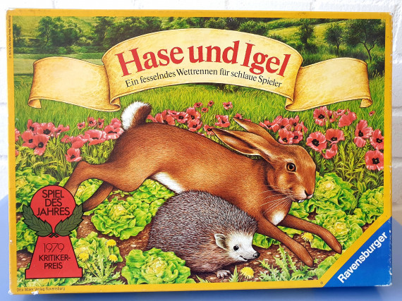 Im Jahr 1973 entwickelt der Engländer David Parlett das Spiel „Hare & Tortoise“, das 1974 bei Intellect Games in England veröffentlicht wird. Unter dem Titel „Hase und Igel“ erscheint das Spiel 1978 im Hause Ravensburger.